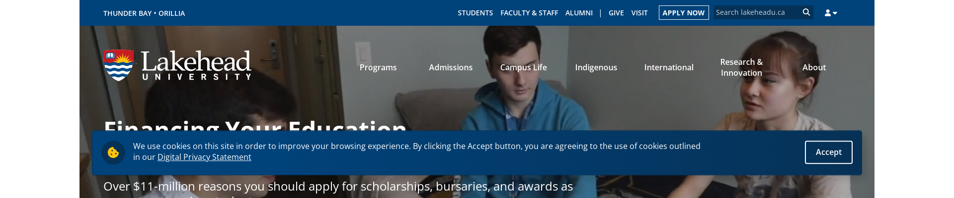 Lakehead University is a public research university located in Thunder Bay, Ontario, Canada. With a main campus in Thunder Bay, Lakehead also has regional campuses in Orillia and Barrie. It is the second-largest university in Northwestern Ontario, with a total of approximately 6,500 undergraduate students and 1,750 graduate students enrolled. Lakehead has a variety of academic programs, including a Medical School, Law School and faculties in the fields of business, arts, sciences, and engineering.