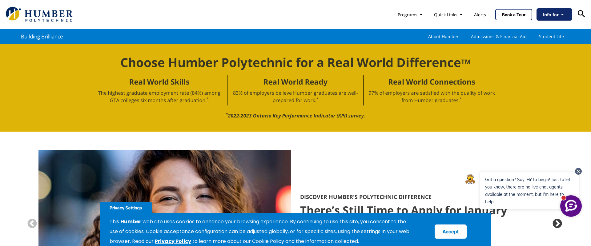 Humber College of Applied Arts and Technology North Campus provides educational and learning opportunities to university-level students of all ages and backgrounds. It offers academic opportunities in business, health sciences, hospitality and tourism, community services, nursing, communication and media studies, engineering technology, and transportation.