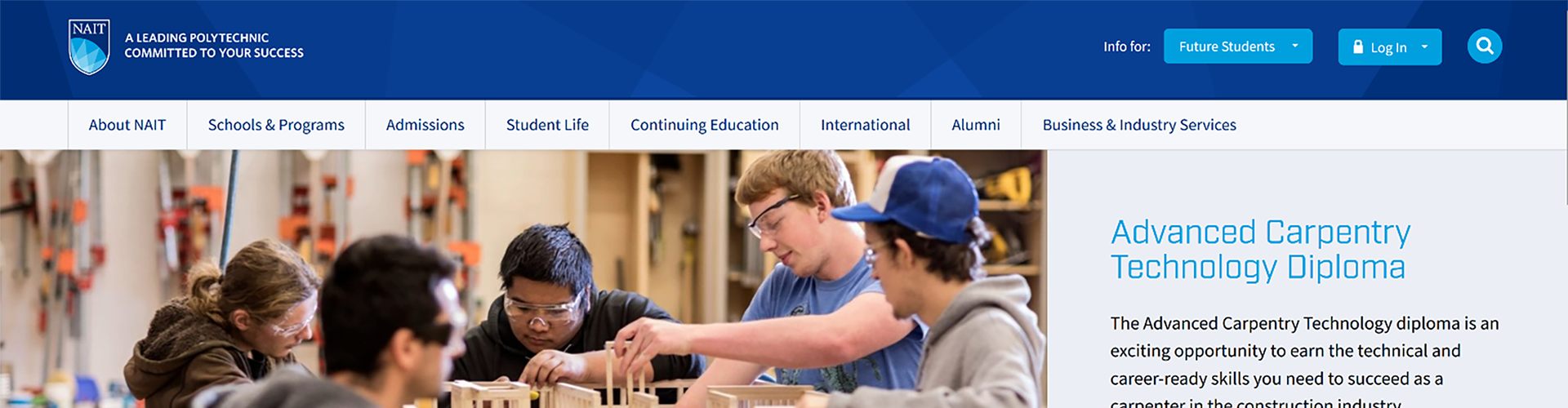 NAIT has an array of technical disciplines that range from its flagship applied research and engineering technologies to business, industry, health, and trades and technology. All of their programs are delivered in state-of-the-art learning facilities and labs and also offer several apprenticeship programs. NAIT also offers several field practicumâ??s each year. Completely hands-on and experiential learning opportunities are available such as international study tours.