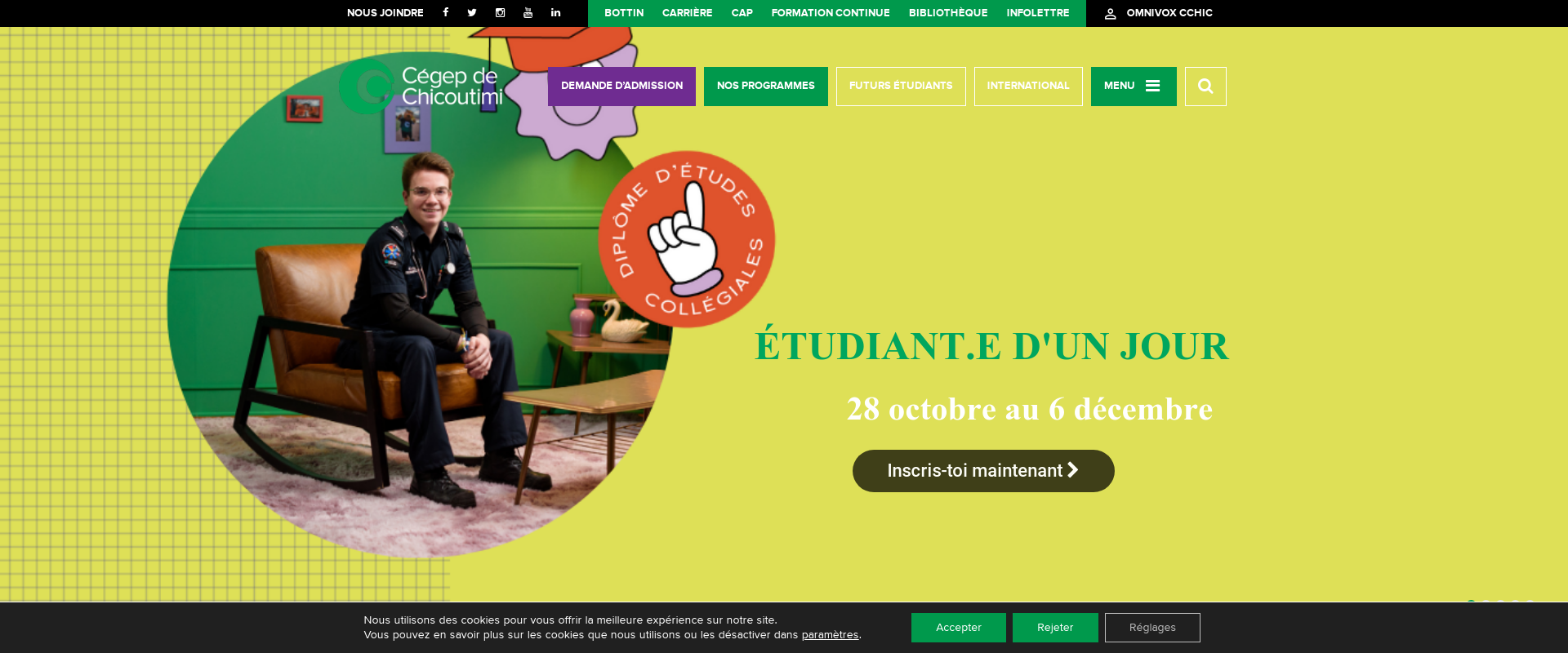 Coll?ge d'enseignement g?n?ral et professionnel (C?GEP) de Chicoutimi is a two-year college located in Quebec, Canada. It is one of 48 c?geps in the province that offer pre-university and technical training to thousands of students. It offers a wide range of courses and programs such as Business Technology, Communications, Computer Science, Education, English, Fine Arts, Health Sciences, Information Technology, Science, Social Sciences, and Tourism.