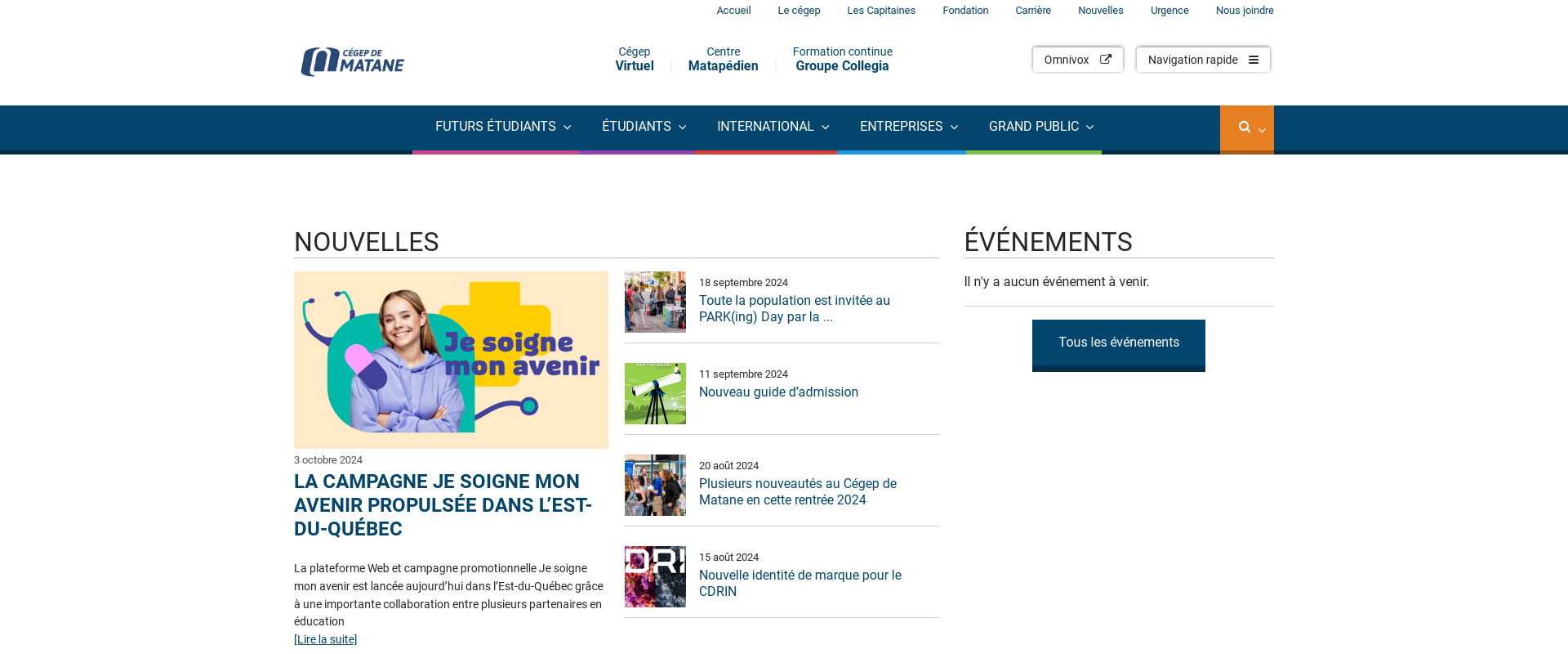 Cégep de Matane currently services about 800 undergraduate students and 200 graduate students. This makes it one of the leading institutions in Quebec in terms of student population. The college also serves students from the high school level in providing them with options to enroll in dual credit courses.